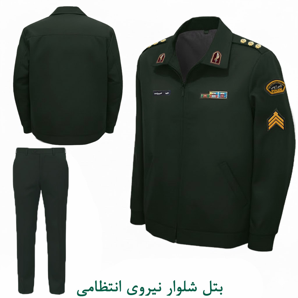 بتل شلوار نیروی انتظامی، لباس فرم استاندارد و مصوب برای پرسنل کادر و افسران فرماندهی انتظامی جمهوری اسلامی ایران (فراجا) است. این مجموعه که شامل یک کاپشن کوتاه (بتل) و شلوار همرنگ میباشد، با رنگ سبز لجنی اختصاصی طراحی شده تا علاوه بر ایجاد آراستگی در محیطهای ستادی، آزادی عمل کافی برای ماموریتهای عملیاتی و میدانی را فراهم آورد. کیفیت دوخت بالا و تنخور حرفهای این لباس، ابهت و انضباط پلیس مقتدر را به بهترین شکل به نمایش میگذارد.