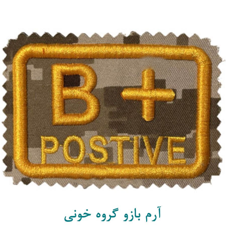 آرم بازو نظامی و تاکتیکال گروه خونی ب مثبت (B+) کامپیوتر خاکی پارچه ای برجسته و دالبور شده جهت نصب بر روی انواع لباس.