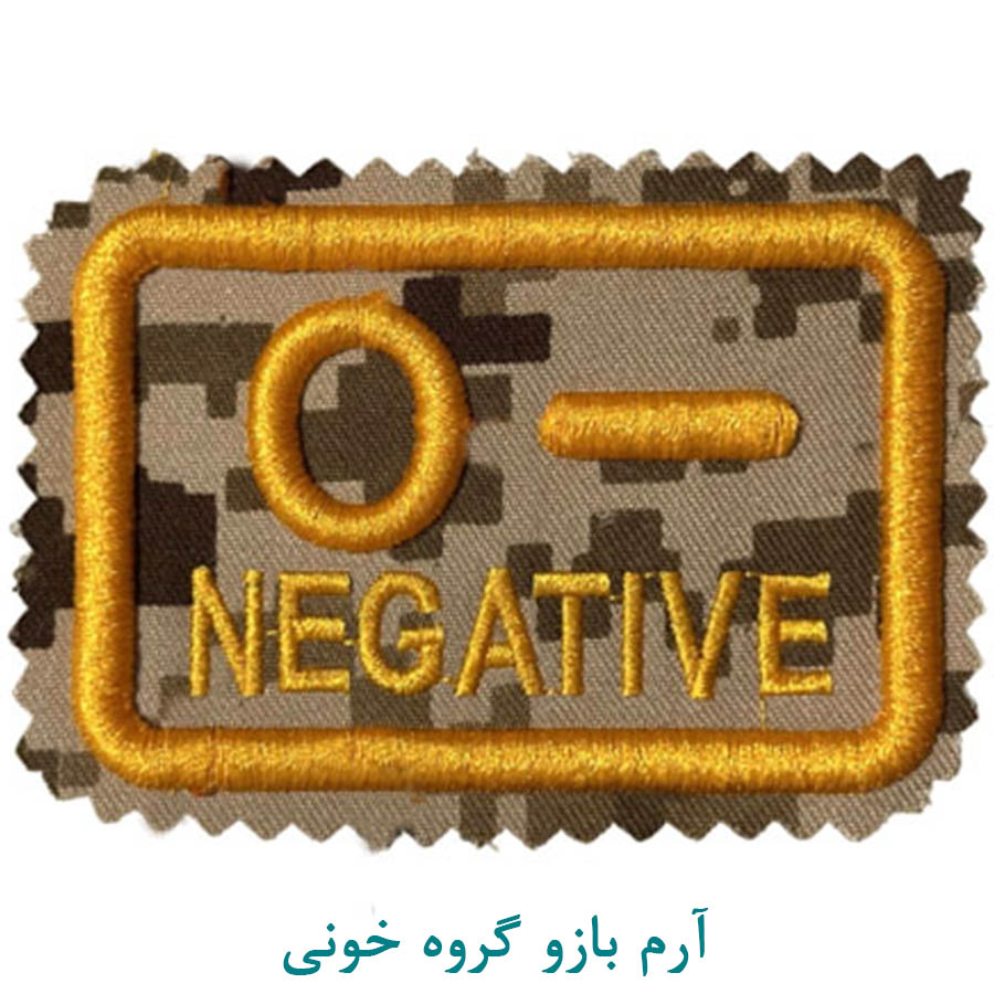 آرم بازو نظامی و تاکتیکال گروه خونی او منفی (O-) کامپیوتر خاکی پارچه ای برجسته و دالبور شده جهت نصب بر روی انواع لباس.