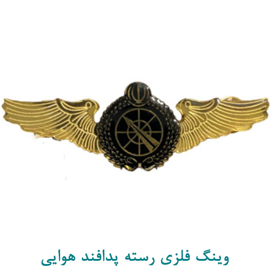 وینگ فلزی نظامی رسته پدافند هوایی مناسب نصب بر پیراهن و لباس نظامی به رنگ طلایی دارای گیره نگهدارنده برای پرسنل نظامی.