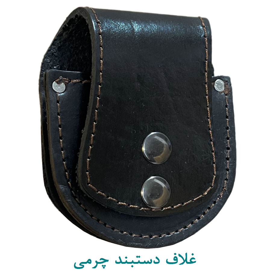 کیف و غلاف دستبند پلیس از جنس چرمی به رنگ خاکستری دارای دکمه فلزی محکم مناسب برای پرسنل نظامی و انتظامی.