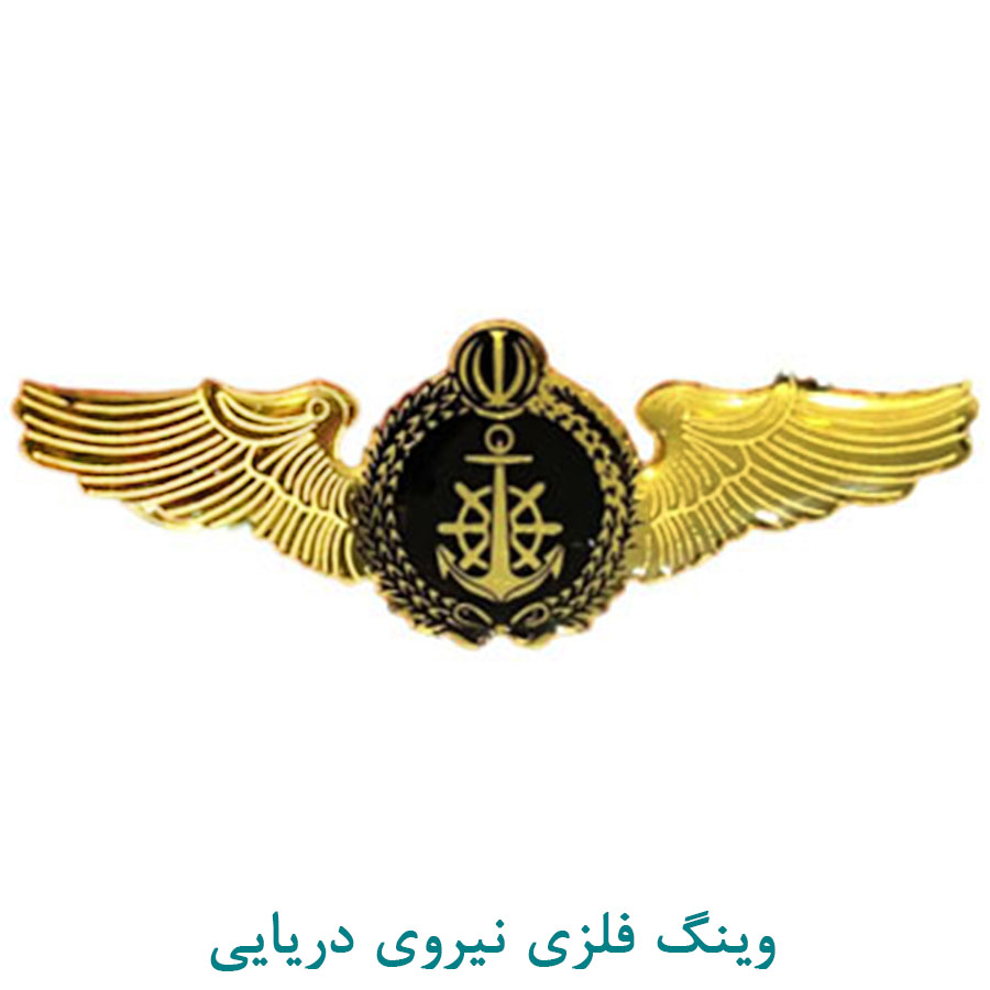 وینگ فلزی نظامی رسته نیروی دریایی مناسب نصب بر پیراهن و لباس نظامی به رنگ طلایی دارای گیره نگهدارنده برای پرسنل نظامی.