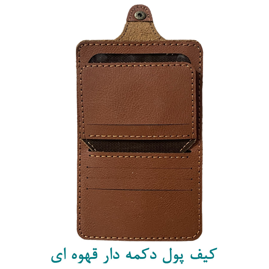 کیف پول دکمه دار چرمی پلیس یگان ویژه به رنگ قهوه ای و دارای جاکارتی با طلق شفاف جهت دیدن کارت.