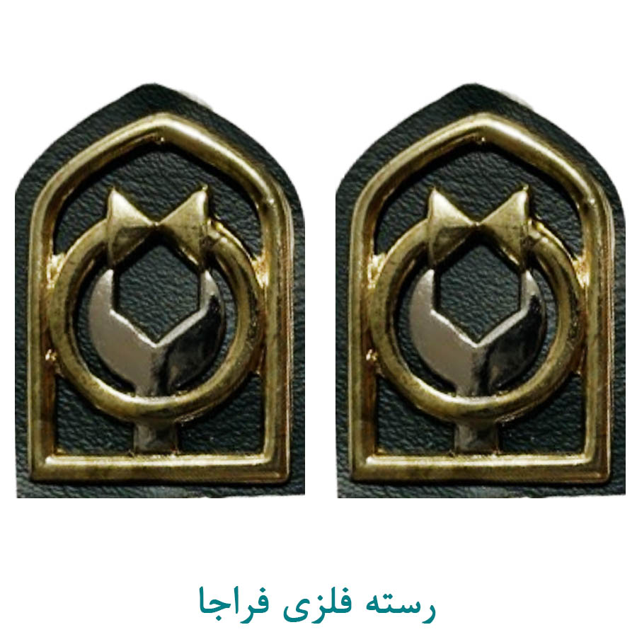آرم یفه نظامی (رسته نظامی آماد فراجا) فلزی فراجا و نیروی انتظامی به رنگ طلایی و زمینه سبز جهت نصب بر روی یقه لباس.